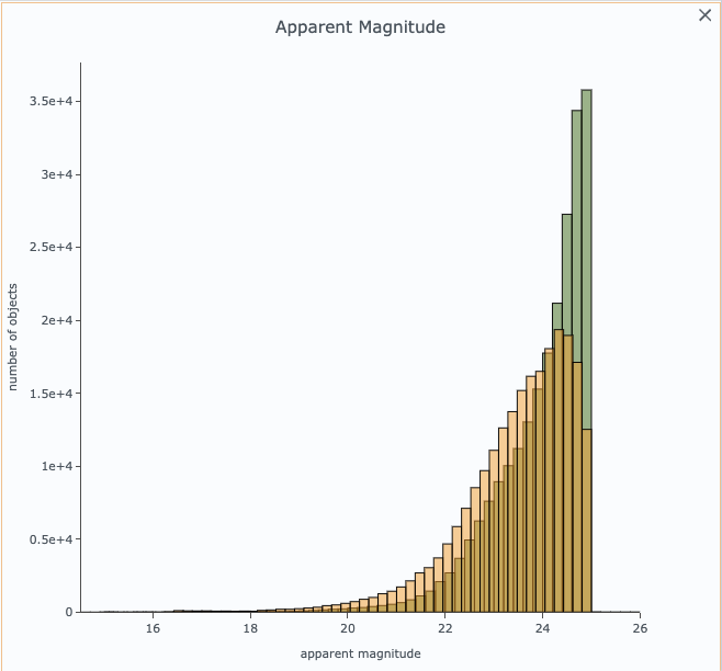 4.5. Review the 1D histograms. The apparent magnitude distributions should appear as in Figure 10.