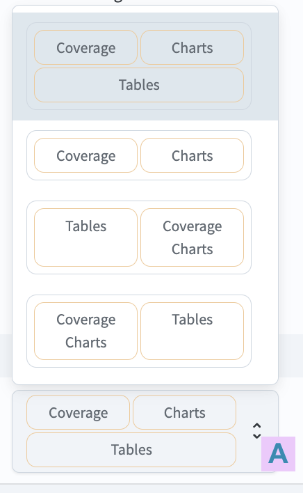 7. Change the layout. In the sidebar menu in Figure 2, choose the two-panel view of coverage charts on the left and tables on the right. Notice that the active chart (the plot) is still available as a tab at upper left. Reopen the sidebar menu to try other layouts and return to the default three-panel view.